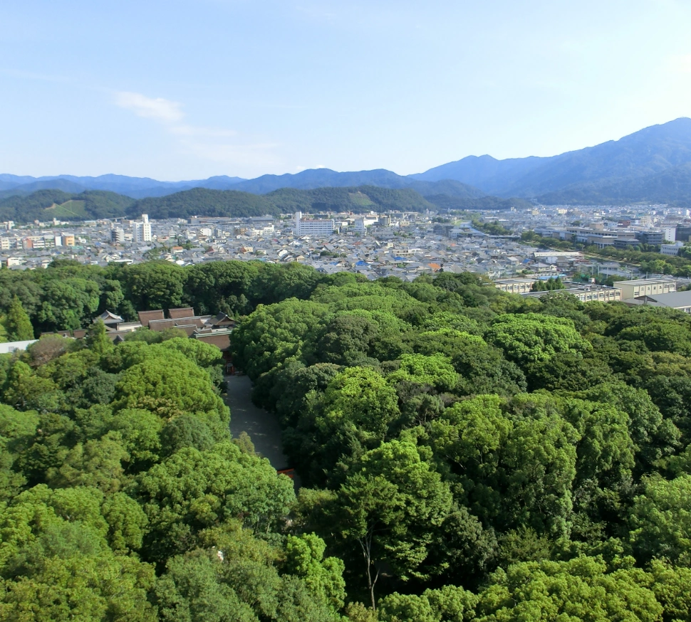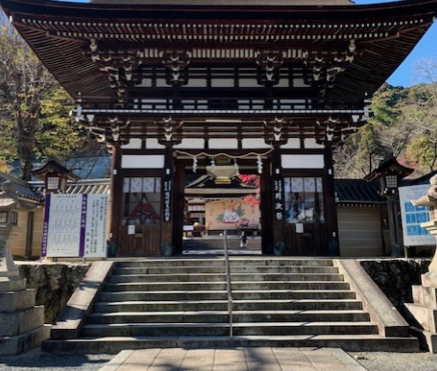 京都の東の出入り口である粟田口に鎮座し、旅立ち守護(旅行安全)厄除の神様として知られています。秋には、御本殿前の楓を始めとして参道脇の木々が色付きはじめ、紅葉のアーチを創り出し素晴らしい景色が楽しめます。