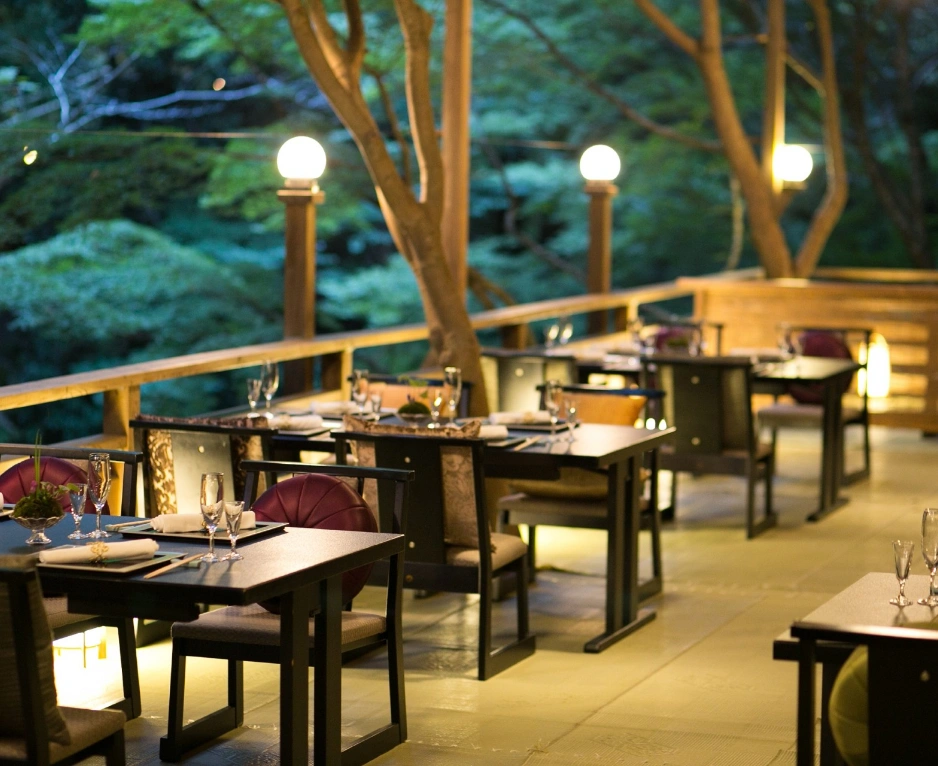 京都洛北、鷹峯の麓”しょうざんリゾート京都”内に位置し、良質な温泉大浴場や足湯も完備。四季折々に変容する庭園、涼やかな川のせせらぎ、石畳の小径など、滞在しながら京都ならではの風雅を。