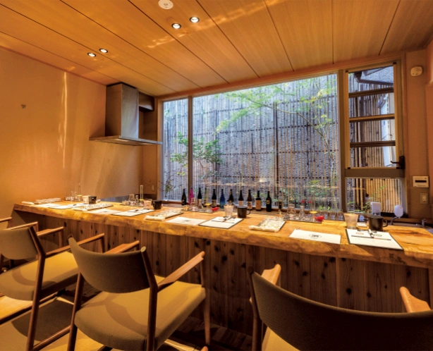 京町家のラウンジと日本酒や檜葉風呂など